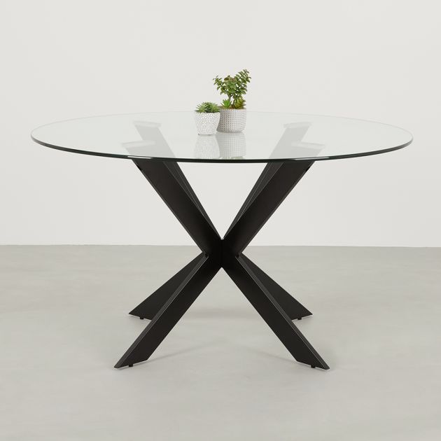Geo Glass 130cm Round Dining Table with Black Legs 4 Seater The